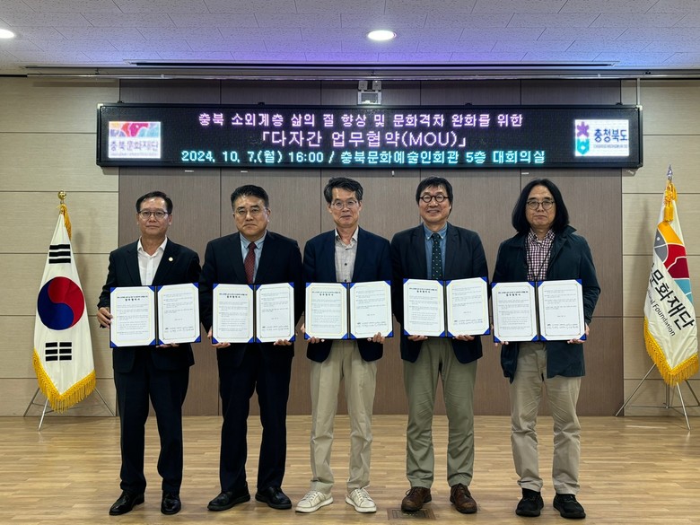 김갑수 대표이사는 “충북의 문화, 예술, 사회서비스, 체육 분야의 거점역할을 하고 있는 4개 기관에서 소외계층의 삶의 질 향상 및 문화격차 완화를 위해 함께 힘써주시길 기대한다.”라고 밝혔다.