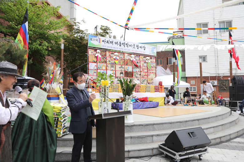 싸리재 대동굿은 싸리로 인한 화재를 막고 이웃 간의 화합을 도모하고자 시작된 행사로, 이번 행사에는 정동준 중구의회 부의장을 비롯해 중구의회 의원들과 김혜숙 싸리재대동굿 보존회장 및 관계자들이 참석해 자리를 빛냈다.